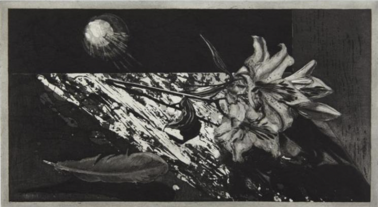 Sylvie Abelanet is a French printmaker who primarily works with lithography and copper engraving. Her work is marked by explorations of texture and contrast, creating often intense and graphic prints.