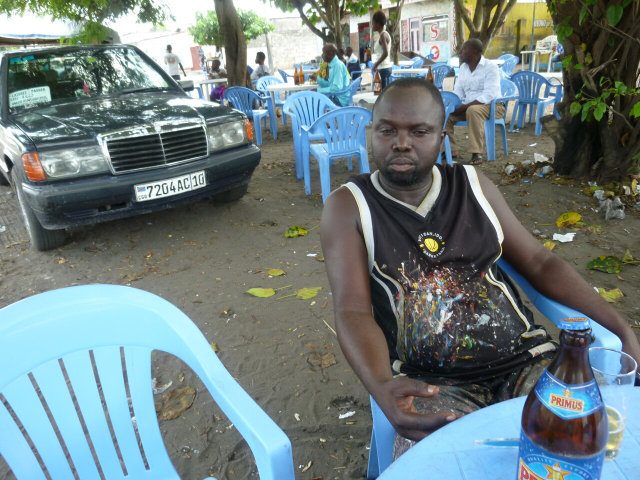 Jean-Marie Monsengwo Odia, known as Moke fils, was born in 1968 in Kinshasa. The older son of the great Moke, Moke fils has taken up his father’s name and traits. He is happy to acknowledge that his style is similar to that of his father. He is proud of it – which is understandable – and clearly proclaims his heritage. His canvases use caricatures to tell the tale of chaotic and colourful everyday life in Kinshasa. Drivers are at odds with police officers and struggle to make their way through the traffic jams, young women wear g-strings with pride and right in the faces of taxi and bus passengers, and people argue and hurl abuse, although everything gets sorted out in the end. Those who know Kinshasa feel they are back there, while those who have never visited the city are amazed by these colourful scenes, which are highly reminiscent of cartoons. Moke fils moved to France around ten years ago.