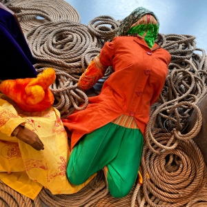 Où sommes-nous ? Dans un jardin luxuriant laissé à l’abandon ? Dans le laboratoire d’un scientifique oublié ? Frôlant la dystopie, on se perd, on franchit les limites, sans oublier de faire la différence entre tissage et tapisserie.