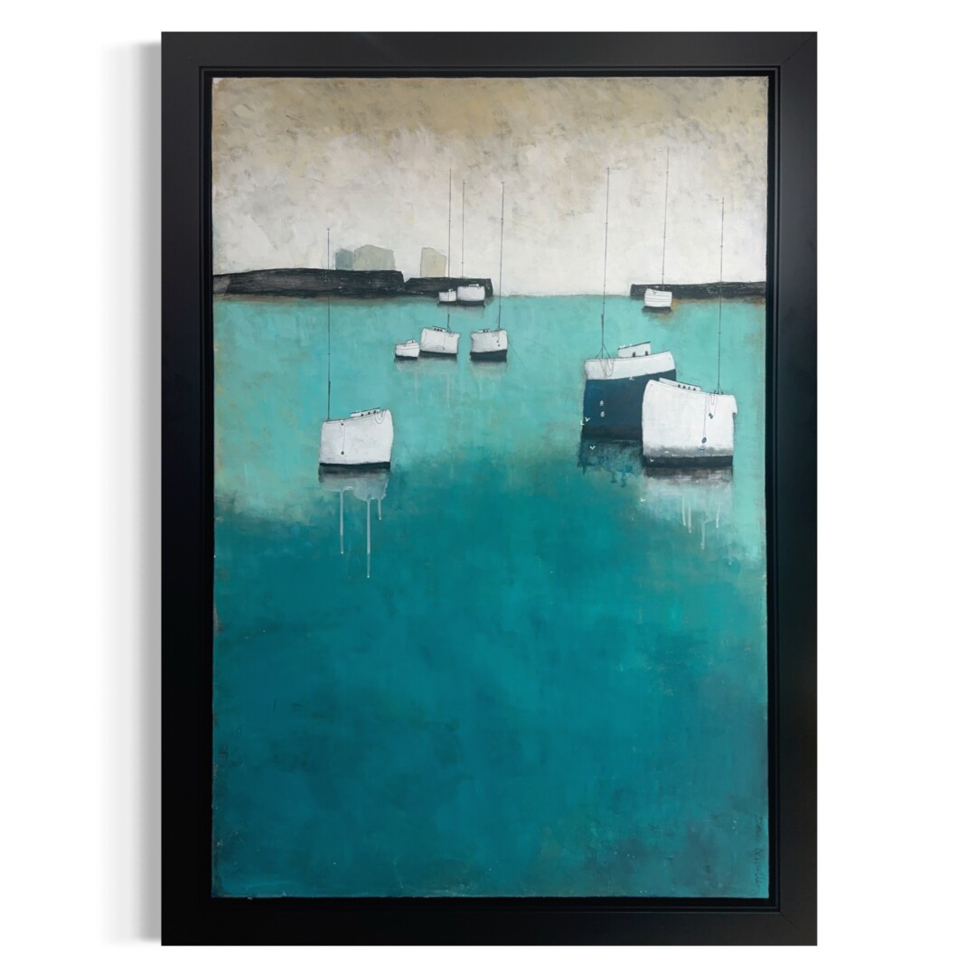 Dom Dewalles développe un travail pictural profondément inspiré par l’univers maritime, les bateaux et les figures humaines liées aux ports et au voyage. Elle utilise des techniques anciennes telles que la caséine et la chaux, appliquées en couches épaisses sur différents supports. Ces procédés donnent naissance à des surfaces fortement texturées, proches de la fresque murale, marquées par des aspérités et des variations qui évoquent le passage du temps.