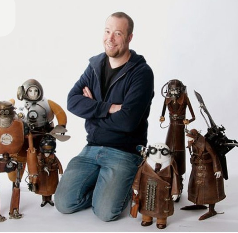 Stéphane Halleux est né en 1972 en Belgique. Il étudie à l’Institut Saint-Luc à Liège puis débute sa carrière en tant que coloriste et maquettiste dans l’animation. La sculpture l’attire particulièrement et lui vient l’idée d’assembler des pièces hétéroclites afin de créer un univers extraordinaire.