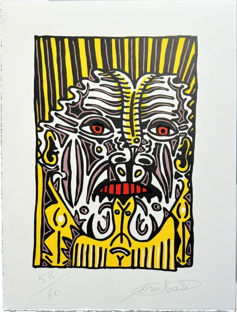 Robert Combas est né à Lyon en 1957. Il a passé son enfance et son adolescence à Sète. Apparu dans un contexte de domination de l’art conceptuel et de retour à la figuration à la fin des années 70, le travail de Robert Combas, découvert par le public à l’occasion de l’exposition du Musée de Saint-Étienne, « Après le classicisme », crée en France une grande surprise. Influencé par le Rock and Roll, la bande dessinée, les arts graphiques et les enseignes nord-africaines que l’artiste voit à Sète, Robert Combas a inventé une iconographie complexe qui mêle, sans hiérarchie, la culture savante et la culture populaire. Il utilise des matériaux de récupération et du carton comme supports de peintures expressionnistes qu’il élabore en s’inspirant notamment de ses dessins d’adolescence.
