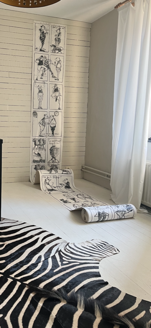 Dessins et croquis sur papier, toile mais également toute sa nouvelle série sur tissus seront présenté lors de ce salon d art contemporain.